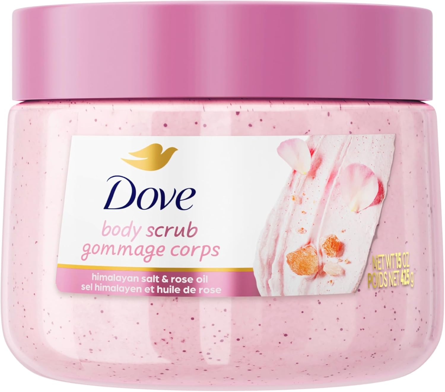 Dove – PH Balanced Body Scrub, with Naturally-Derived and Sulfate-Free Cleansers, Himalayan Salt & Rose Oil.